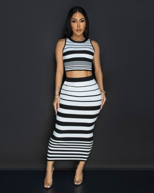 Chic Striped Two-Piece Knit Set